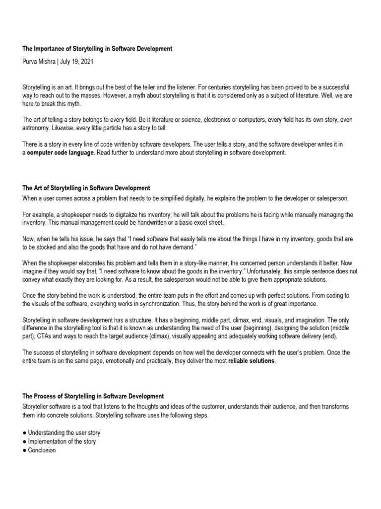Storyteller software is a tool that listens to the thoughts and ideas of the customer, understands their audience, and then transforms