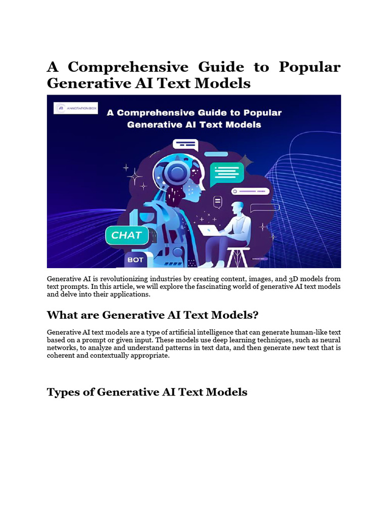 text prompts. In this article, we will explore the fascinating world of generative AI text models