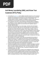 Anti-Money Laundering. For the sake of ease of navigating this document
