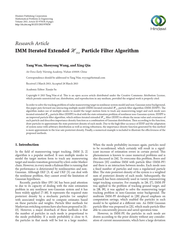 [18] H. W. Li and J. Wang, “Particle filter for manoeuvring target