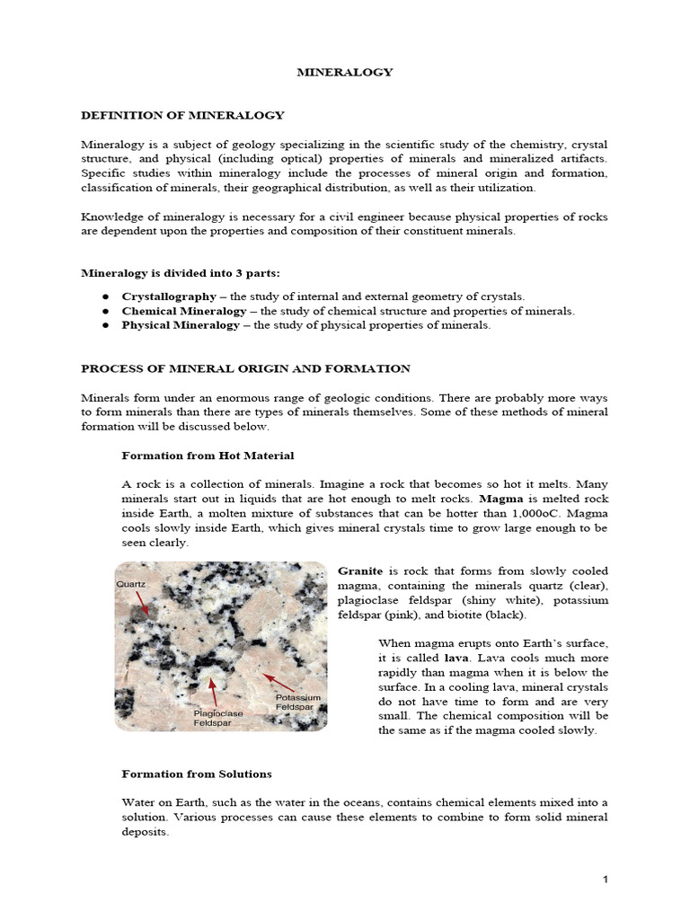 Specific studies within mineralogy include the processes of mineral origin and formation,