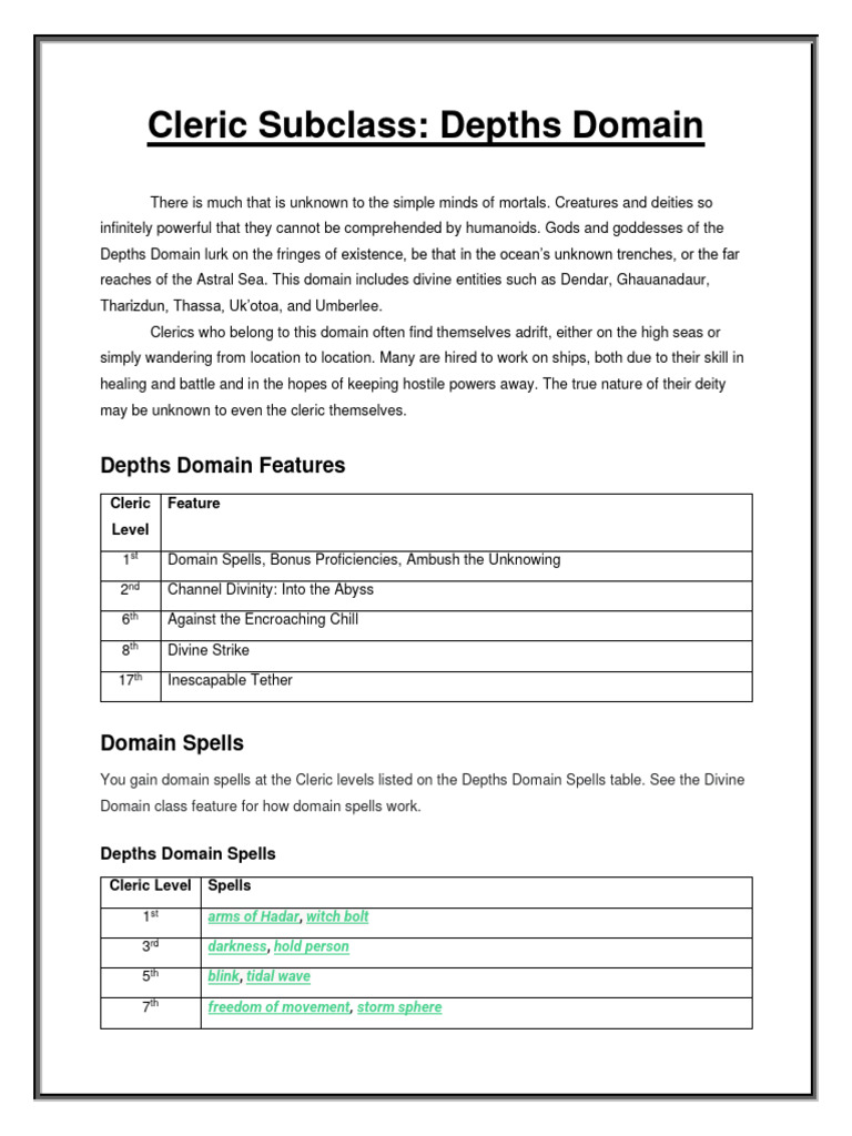 Cleric Subclass: Depths Domain