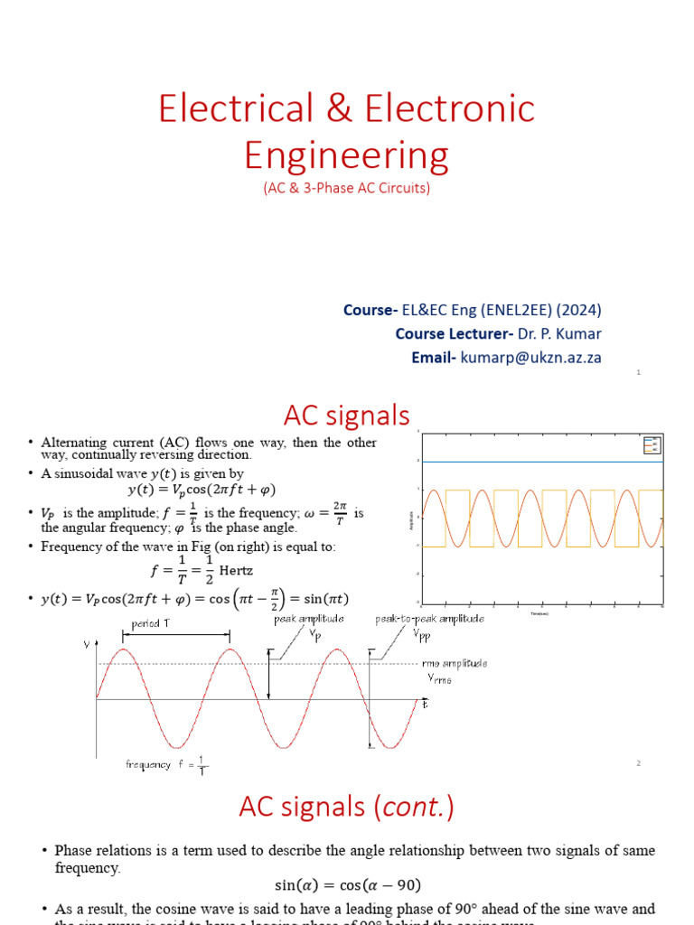 𝑦𝑦 𝑡𝑡 = 𝑉𝑉𝑝𝑝 cos(2𝜋𝜋𝜋𝜋𝜋𝜋 + 𝜑𝜑) 1
