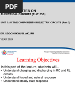 • Voltage across capacitor 𝑉𝑉𝑐𝑐 = 𝑉𝑉0 𝑒𝑒 , where 𝜏𝜏 = 𝑅𝑅𝑅𝑅 is called the time constant.