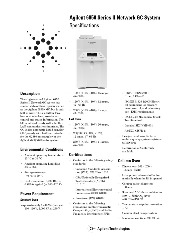 Series II Network GC system has • 120 V (+10%, –10%), 12 amps, - IEC/EN 61326-1:2005 Electri-