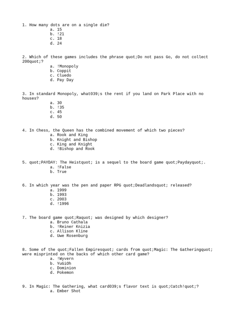 2. Which of these games includes the phrase quot;Do not pass Go, do not collect