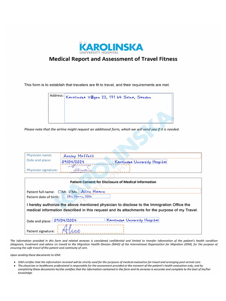 Medical Report and Assessment of Travel Fitness