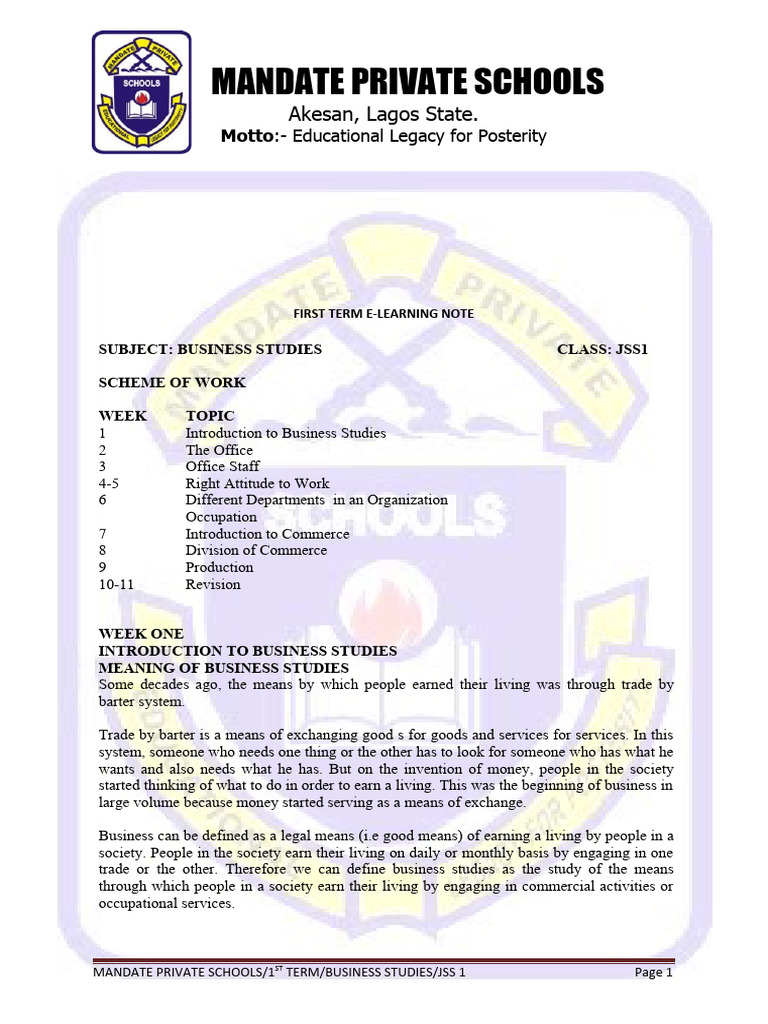 MANDATE PRIVATE SCHOOLS/1ST TERM/BUSINESS STUDIES/JSS 1 Page 2