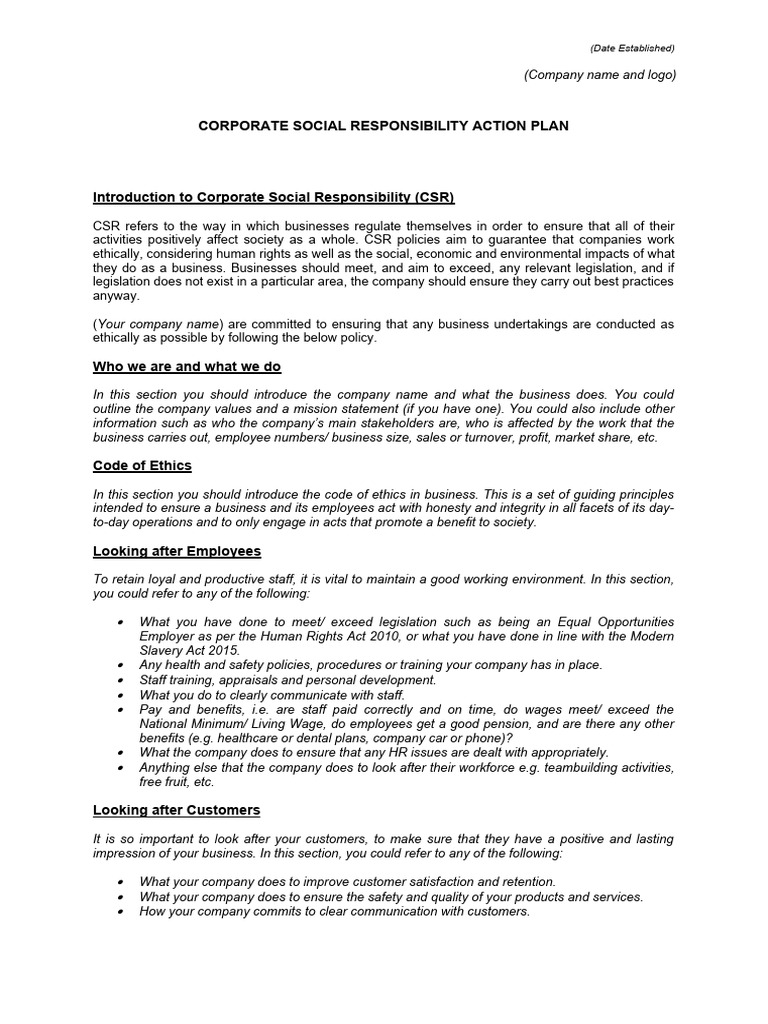 CORPORATE SOCIAL RESPONSIBILITY ACTION PLAN