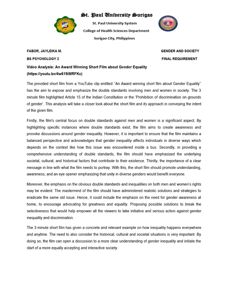 FABOR, JAYLEIKA M. GENDER AND SOCIETY