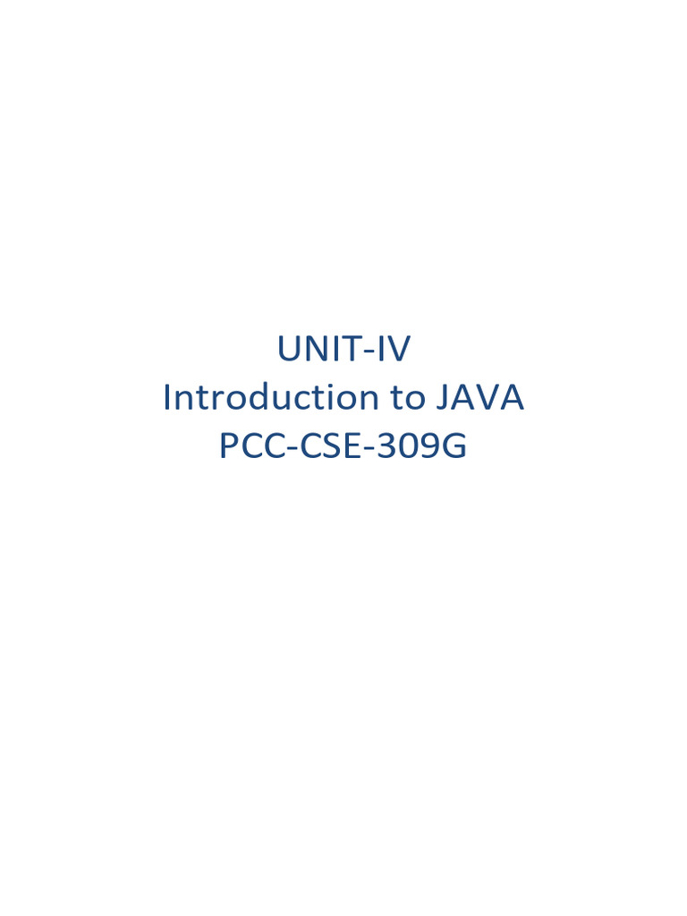 Introduction to JAVA