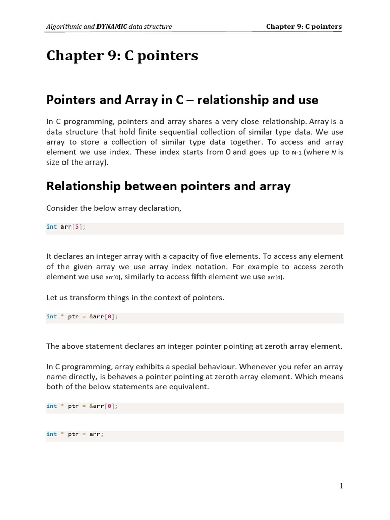 Algorithmic and DYNAMIC data structure Chapter 9: C pointers