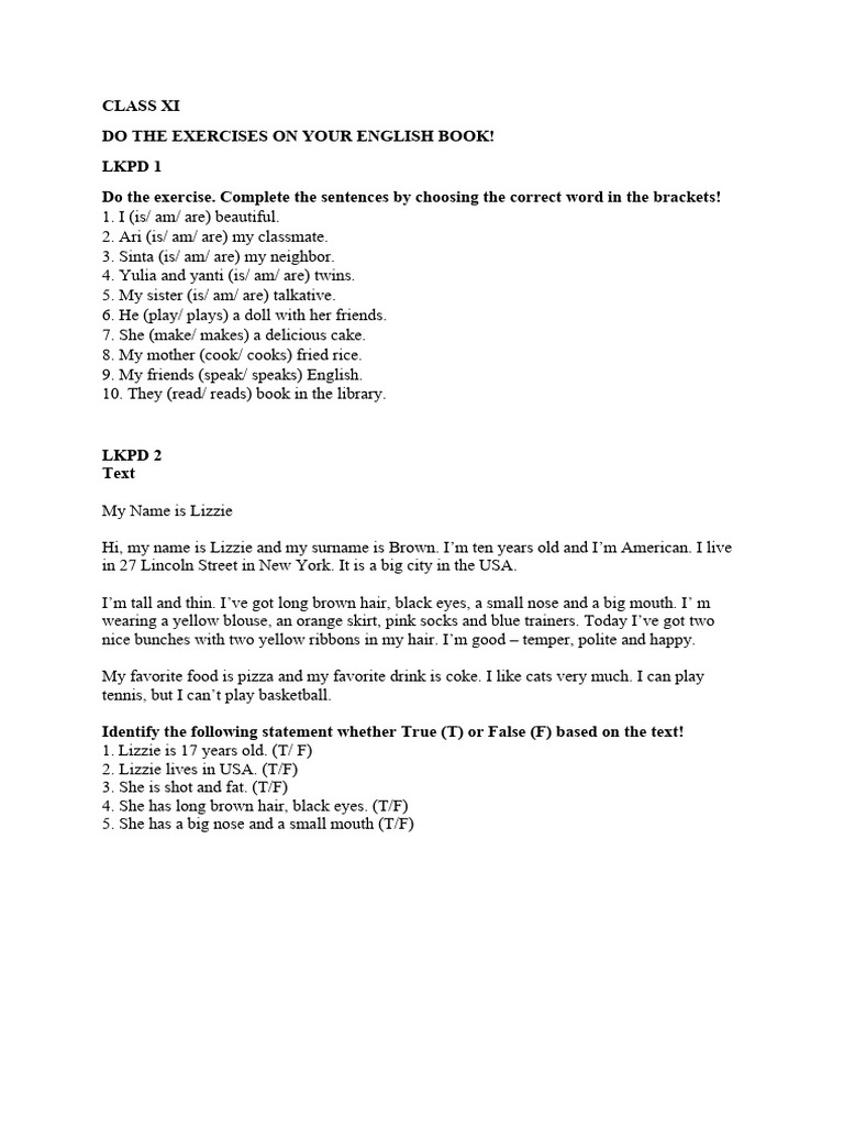 1. Lizzie is 17 years old. (T/ F)