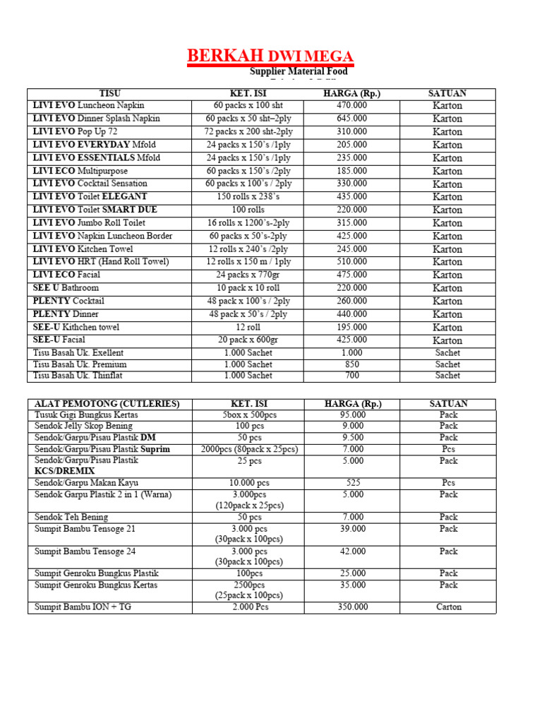 TISU KET. ISI HARGA (Rp.) SATUAN