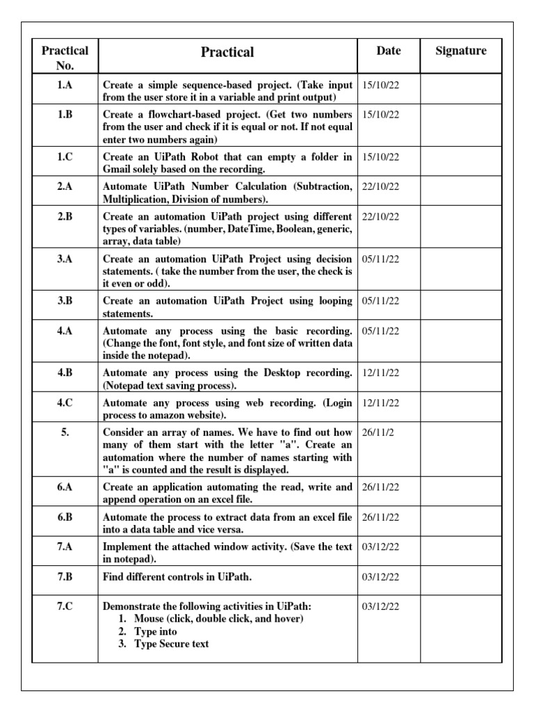 Practical No.:7. C: Demonstrate the following activities in UiPath: