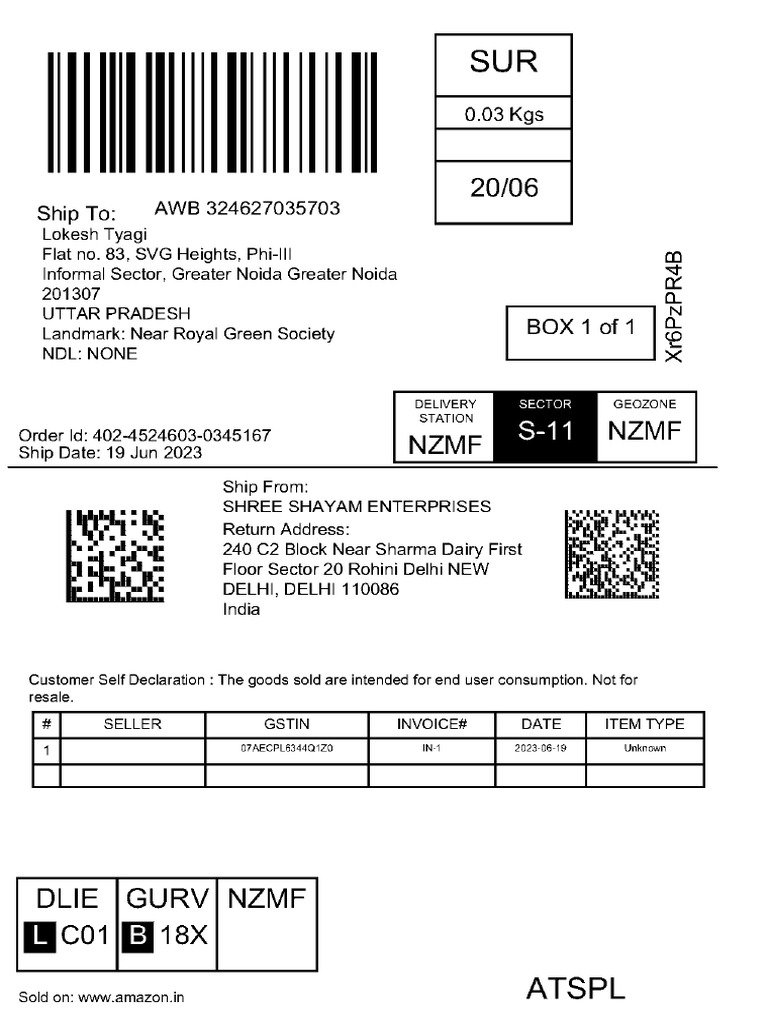 Order Date:18.06.2023 Invoice Details :DL-257758893-2324
