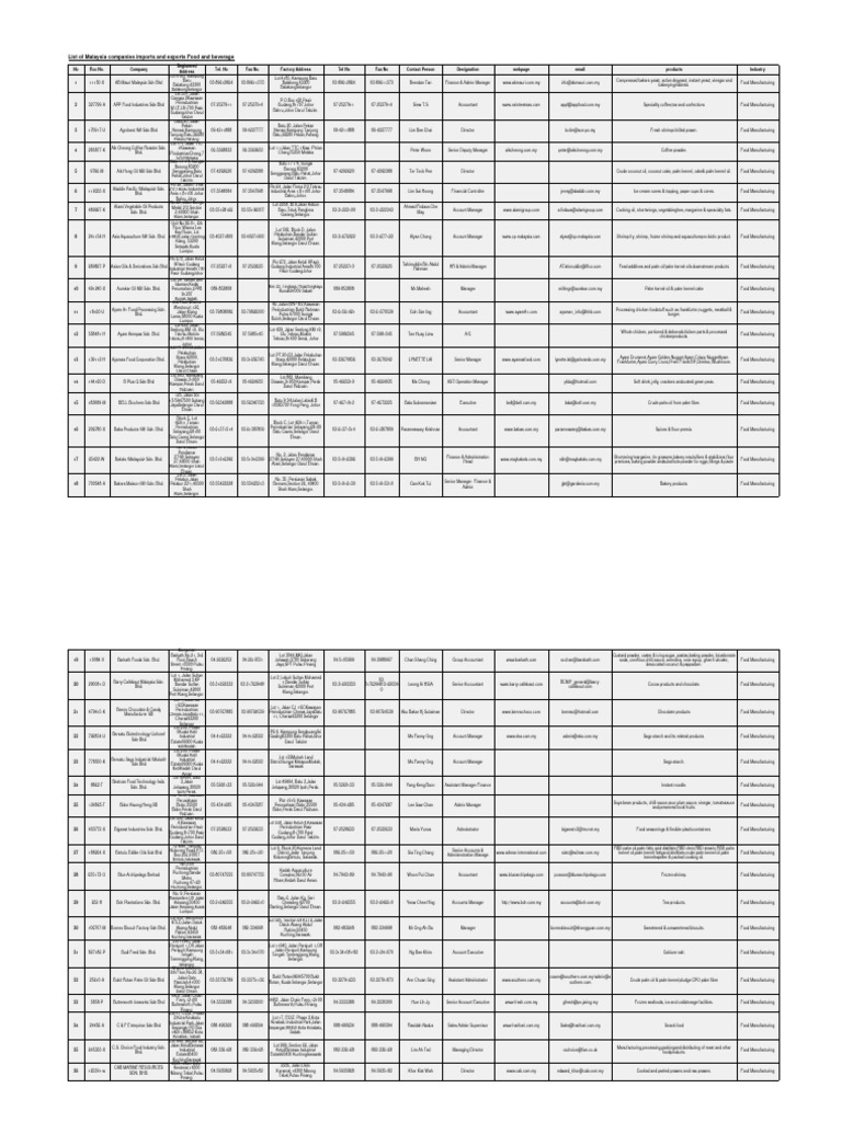 8 241154-H Asia Aquaculture (M) Sdn. Bhd. 14408,Jalan Genting 03-40271800 03-40271900 03-31676022 03-31677122 Alyse Chong Account Manager [Link] alyse@[Link] Shrimp fry, shrimp, frozen shrimp and aquaculturepro-biotic product. Food Manufacturing