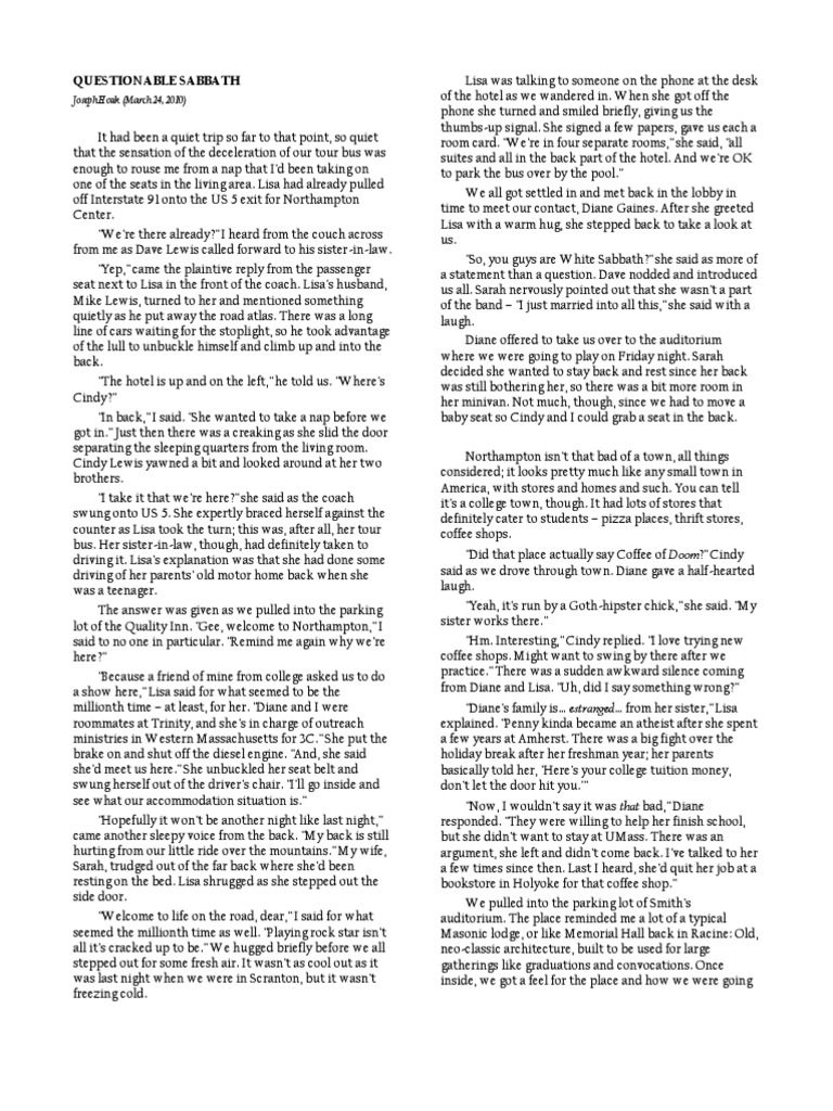 The original version of "Questionable Sabbath" - available elsewhere on Scribd. What happens when a "God Rock" band invades Northampton and the world of the characters from Questionable Content by Jeph Jacques? Find out here.