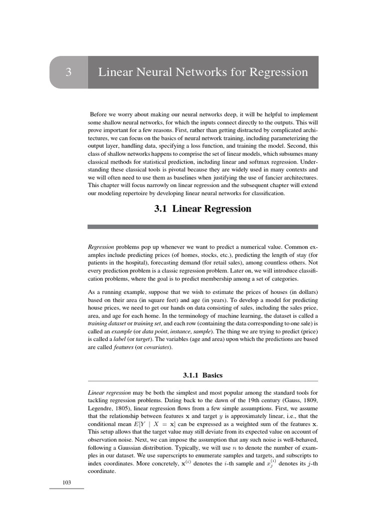 ŷ = w1 x1 + ... + wd xd + b. (3.1.2)