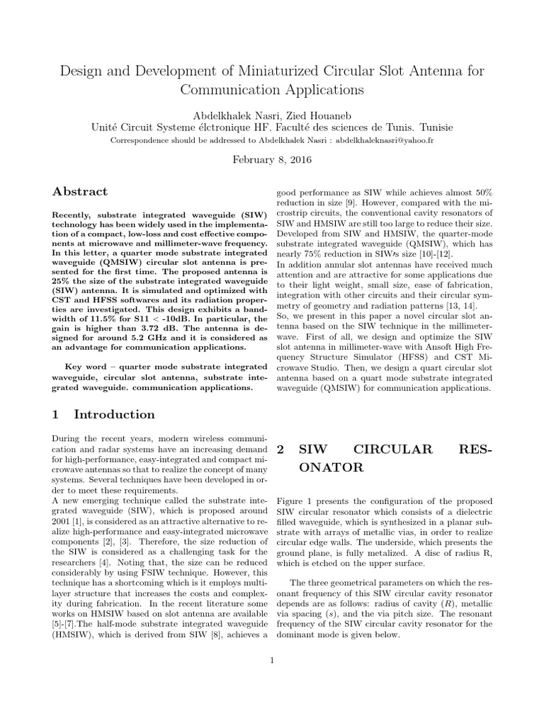 cation and radar systems have an increasing demand 2 SIW CIRCULAR RES-