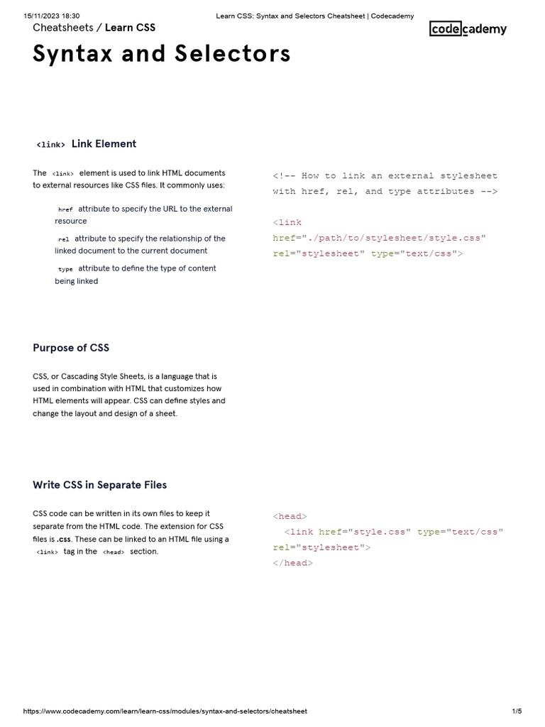 15/11/2023 18:30 Learn CSS: Syntax and Selectors Cheatsheet | Codecademy