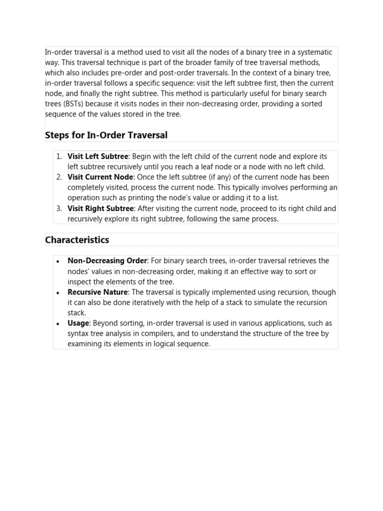 Usage: Beyond sorting, in-order traversal is used in various applications, such as