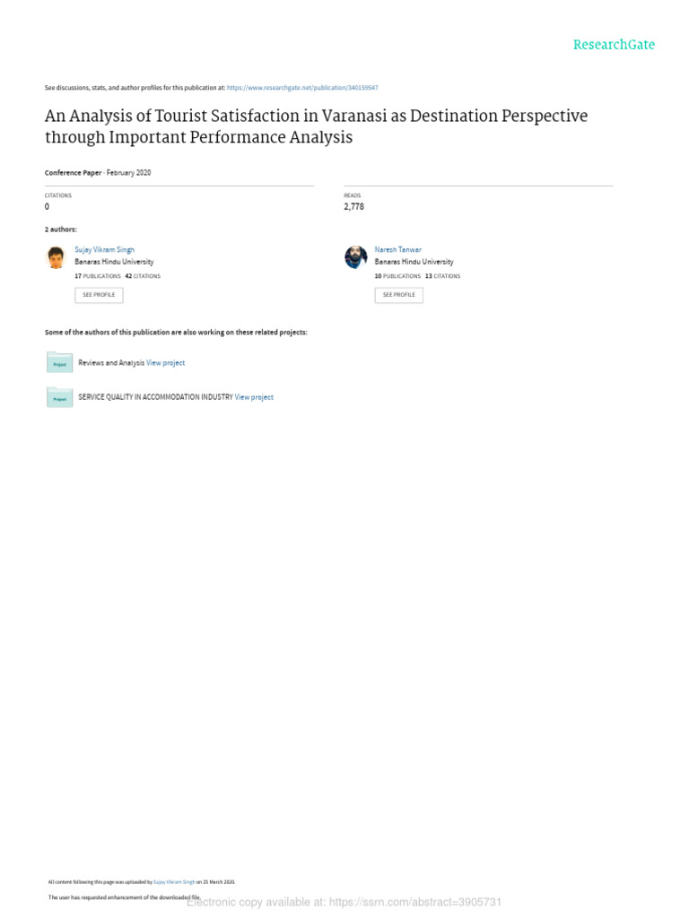 An Analysis of Tourist Satisfaction in Varanasi as Destination Perspective through Important Performance Analysis 83