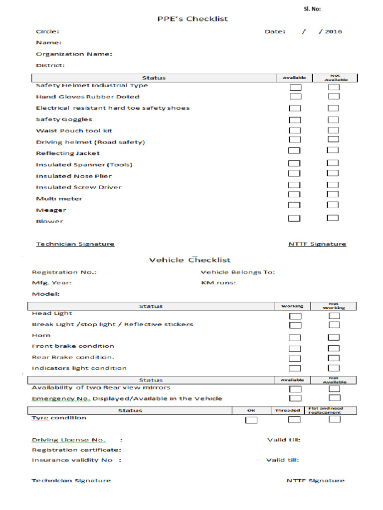 I ( Technician Name)……………………………………...………………………… S/o………………………………………………………hereby declare that I will use helmet, Safety shoes,Safety gloves and other