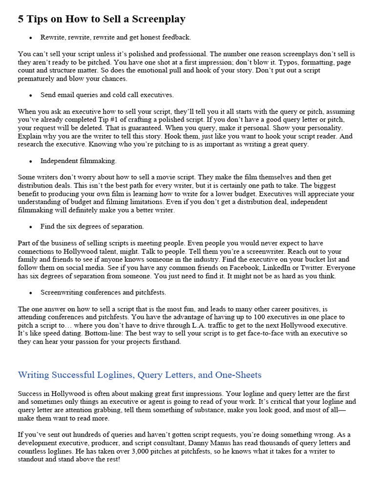 you’ve already completed Tip #1 of crafting a polished script. If you don’t have a good query letter or pitch,