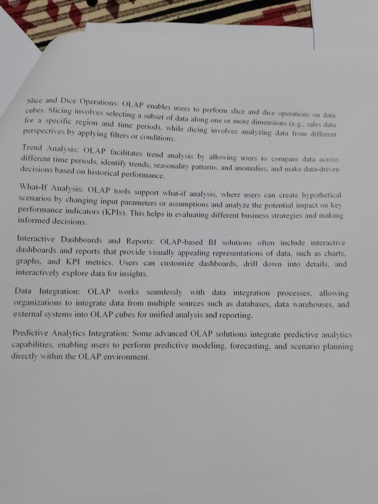 f Analysis: OLAP tools Support what-if analysis, where users can create hypothetical