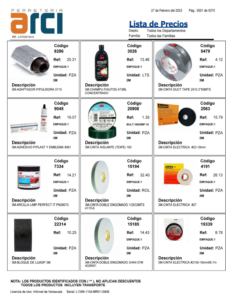 Lista de Precios de Lijas y Discos 2023