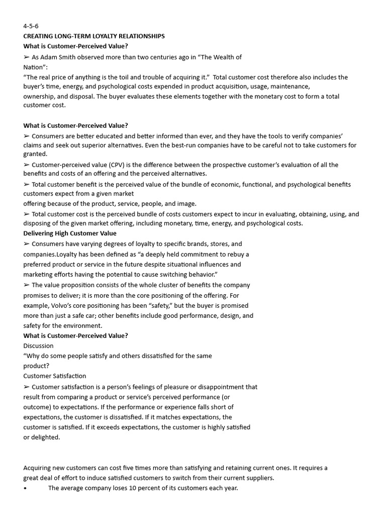 ➢ Customer-perceived value (CPV) is the difference between the prospective customer’s evaluation of all the