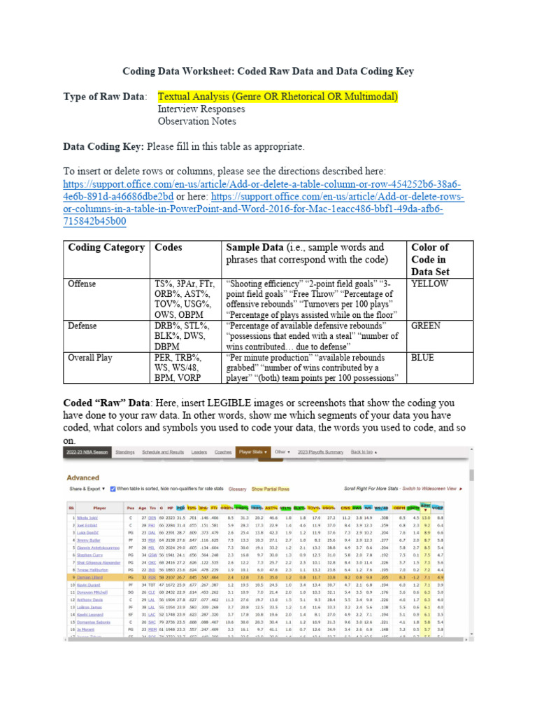 Coding Data Worksheet: Coded Raw Data and Data Coding Key