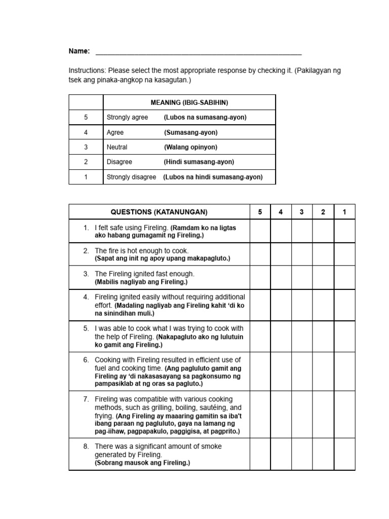 Instructions: Please select the most appropriate response by checking it. (Pakilagyan ng