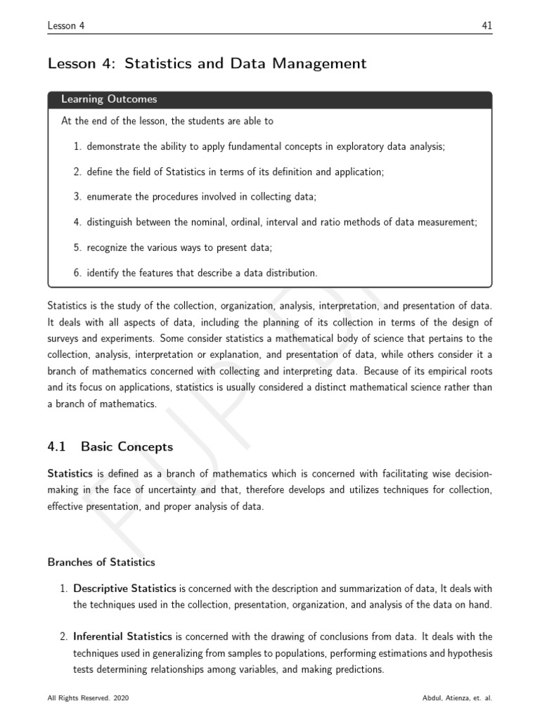 complex groups and interpreting collective phenomenon. Nowadays the uses of statistics are abun-
