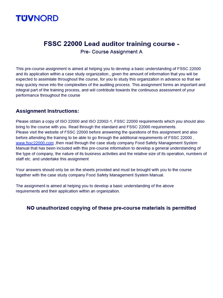 This pre-course assignment is aimed at helping you to develop a basic understanding of FSSC 22000