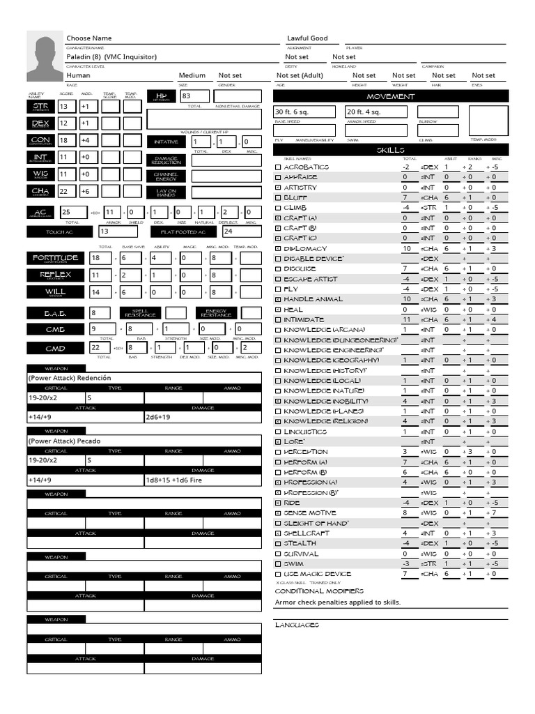 Paladin Character Sheet Template