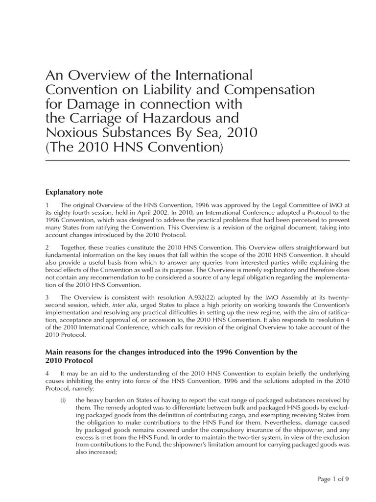 1 The original Overview of the HNS Convention, 1996 was approved by the Legal Committee of IMO at