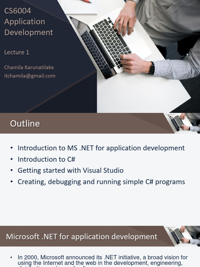 • Introduction to MS .NET for application development