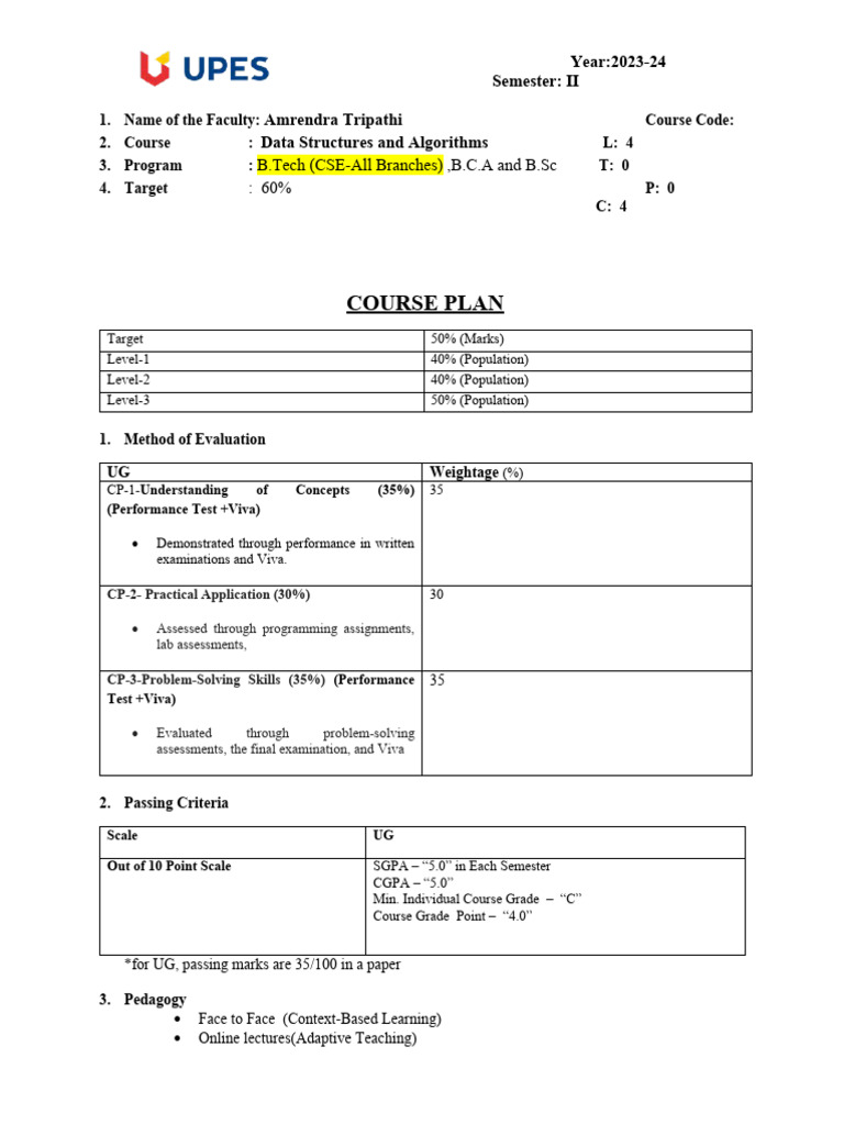 1. Name of the Faculty: Amrendra Tripathi Course Code: