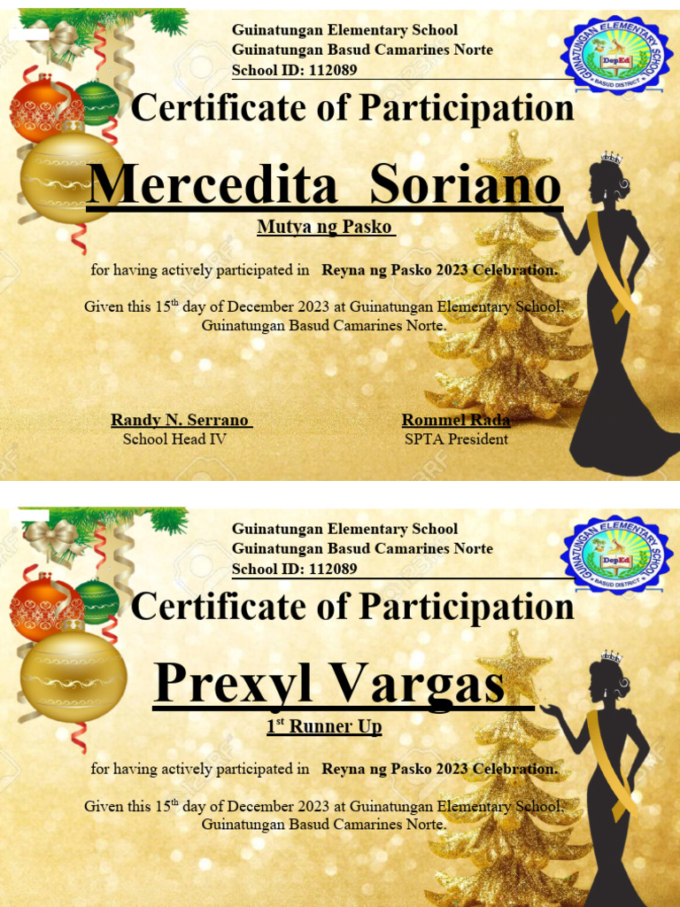 for having actively participated in Reyna ng Pasko 2023 Celebration.