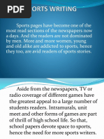 Sports writing has become one of the most popular forms of modern journalistic writing. More and