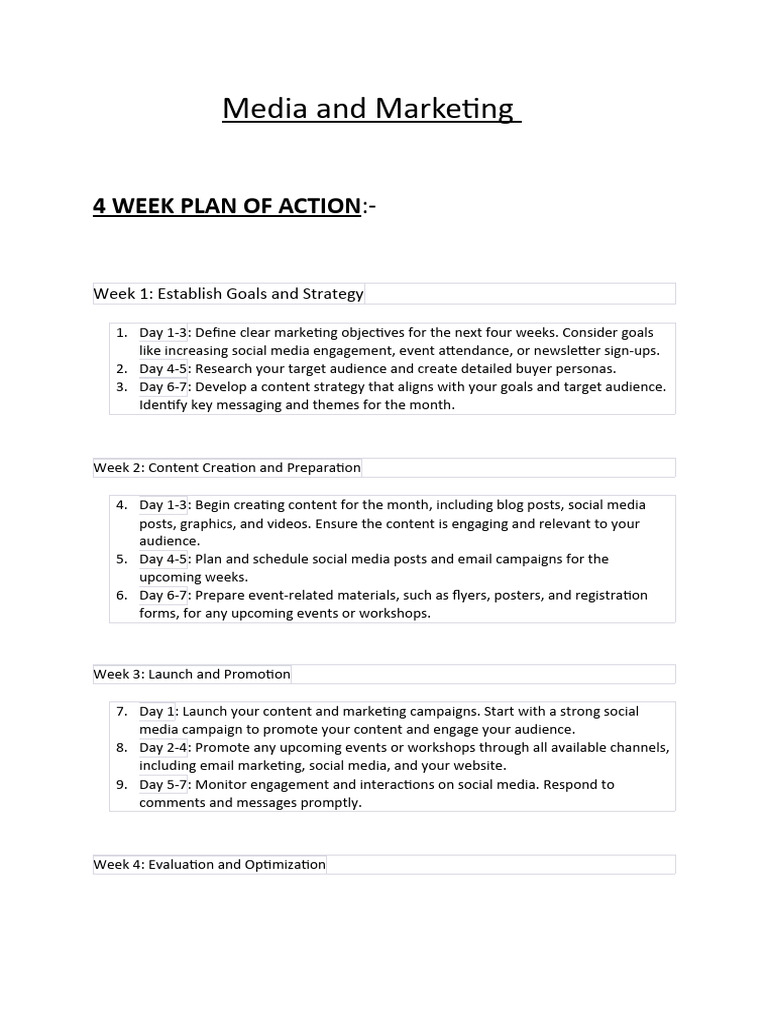 1. Day 1-3: Define clear marketing objectives for the next four weeks. Consider goals