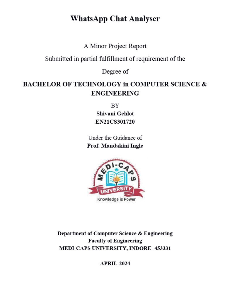 I, Prof. Mandakini Ingle certify that the project entitled “WhatsApp Chat