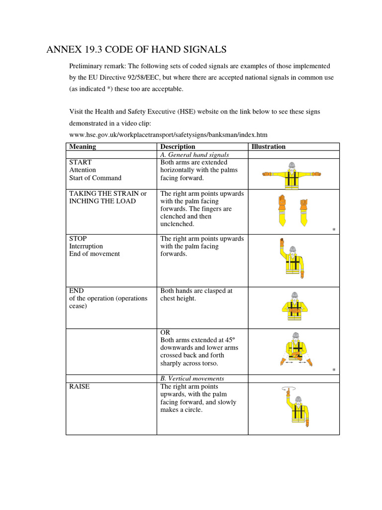 A. General hand signals