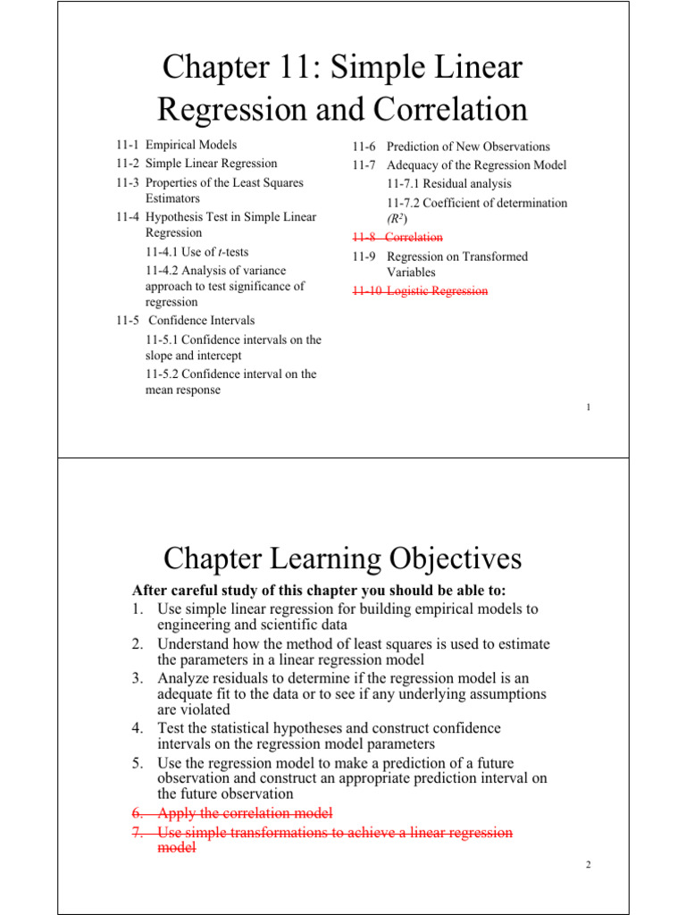 11-2 Simple Linear Regression 11-7 Adequacy of the Regression Model