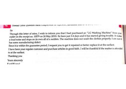 ‘Through this letter of mine, I wish to inform you that I had purchased an “LG Washing Machine” from your