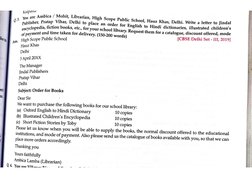 Order for Books: Demonstrates how to write a formal order letter for books for a school library, listing specific book titles and quantities.