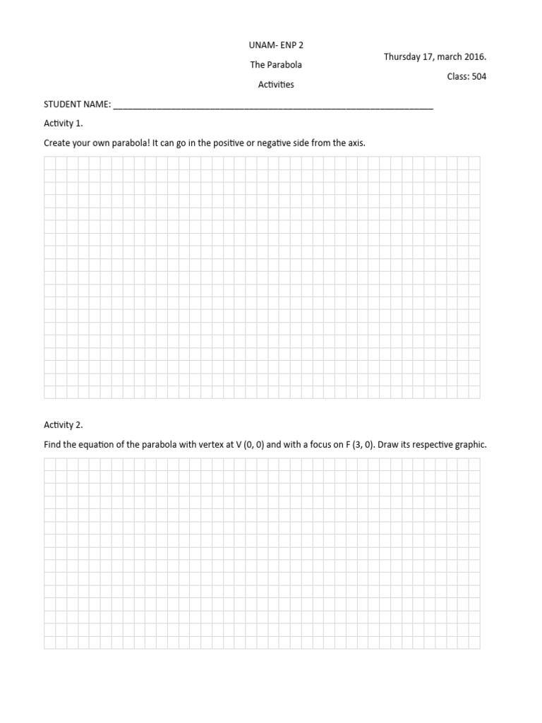 Create your own parabola! It can go in the positive or negative side from the axis.