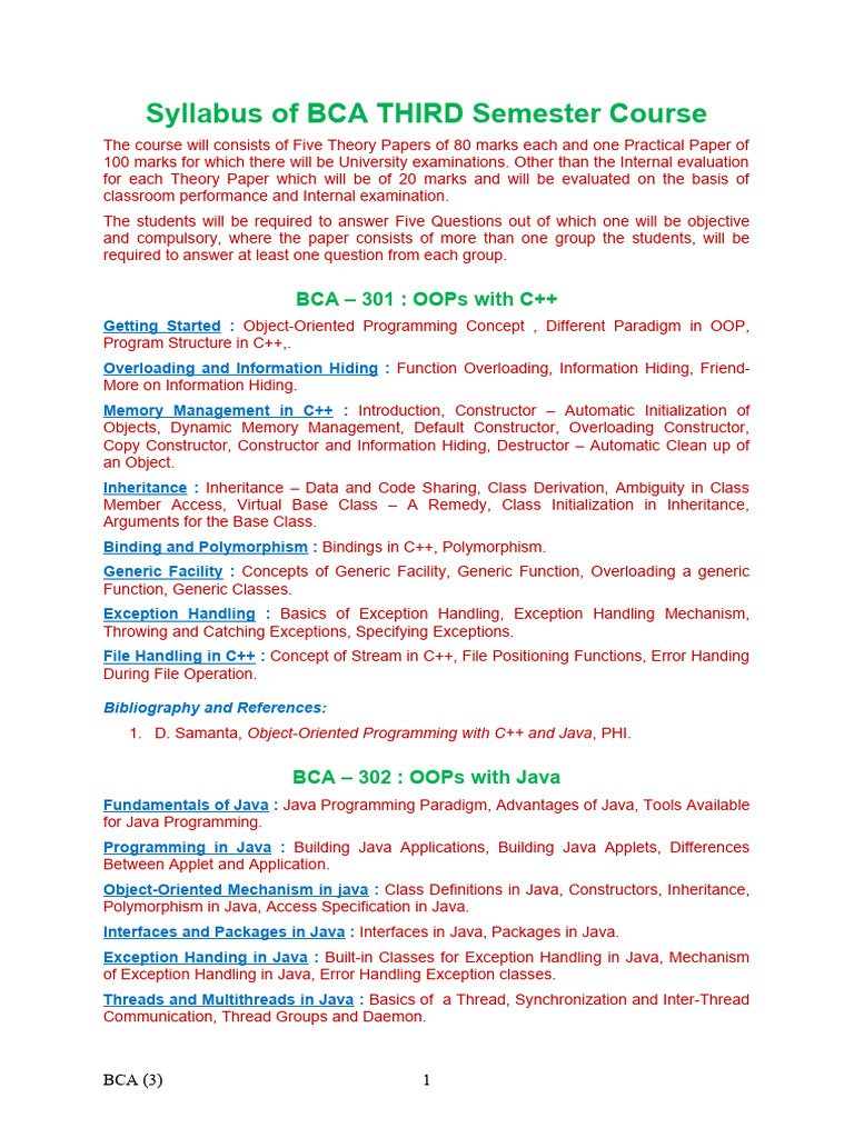 Syllabus of BCA THIRD Semester Course